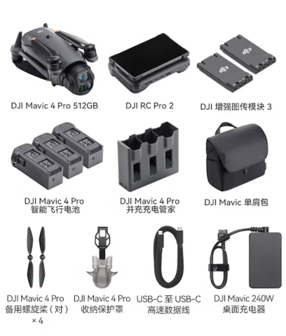 品牌大疆(DJI)店铺DJI大疆智选专卖店图片格式DNG JPEG电池容量3850Wh无线电发射设备型号核准证否型号Mavic 4 Pro最大载重1kg以下最大抗风速12m/s认证型号DJI Mavic 4 Pro数据传输Wi-Fi传输实时图传质量1080p操控方式遥控器控制支持接口类型USB-C副摄像素数1200万适用场景旅行 家庭团聚感知系统类型多方向避障主摄CMOS尺寸4/3英寸最大信号有效距离9km以上视频拍摄能力6K 60P包装清单暂无